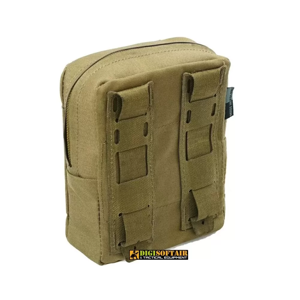 Tasca multiuso che permette di trasportare attrezzature varie o oggetti personali e si chiude con zip a doppio cursore. Tutti i carichi hanno un foro di scarico inferiore e due pannelli in velcro all'interno. Il pannello MOLLE anteriore consente di collegare apparecchiature compatibili MOLLE sulla superficie esterna. La custodia è realizzata in Cordura 500D e un resistente laminato a base di Cordura 500D. Entrambi i tessuti sono trattati IRR.